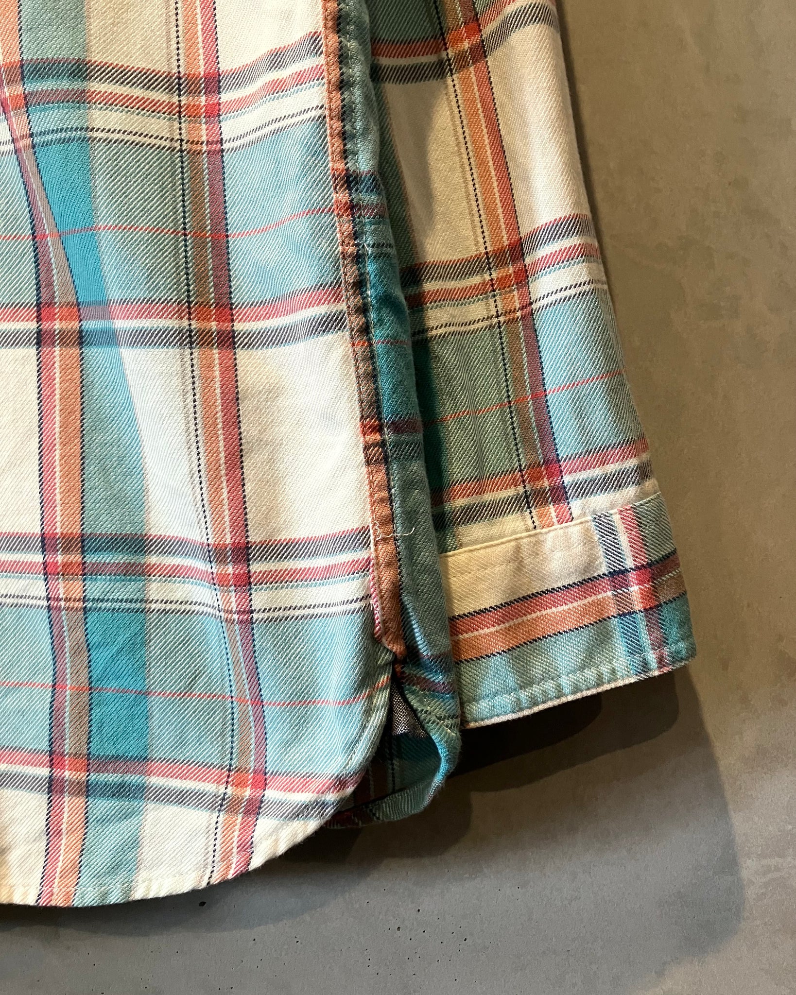 オフホワイトにターコイズ、淡いレッド、オレンジ、