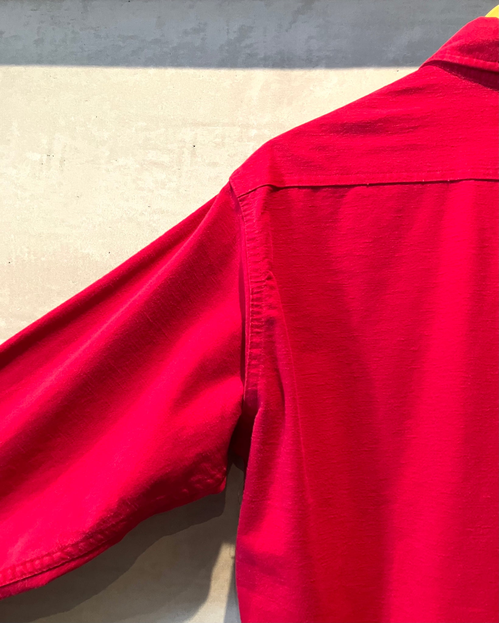 発色の良い鮮やかなレッドのシャモアクロスシャツ、オススメです。