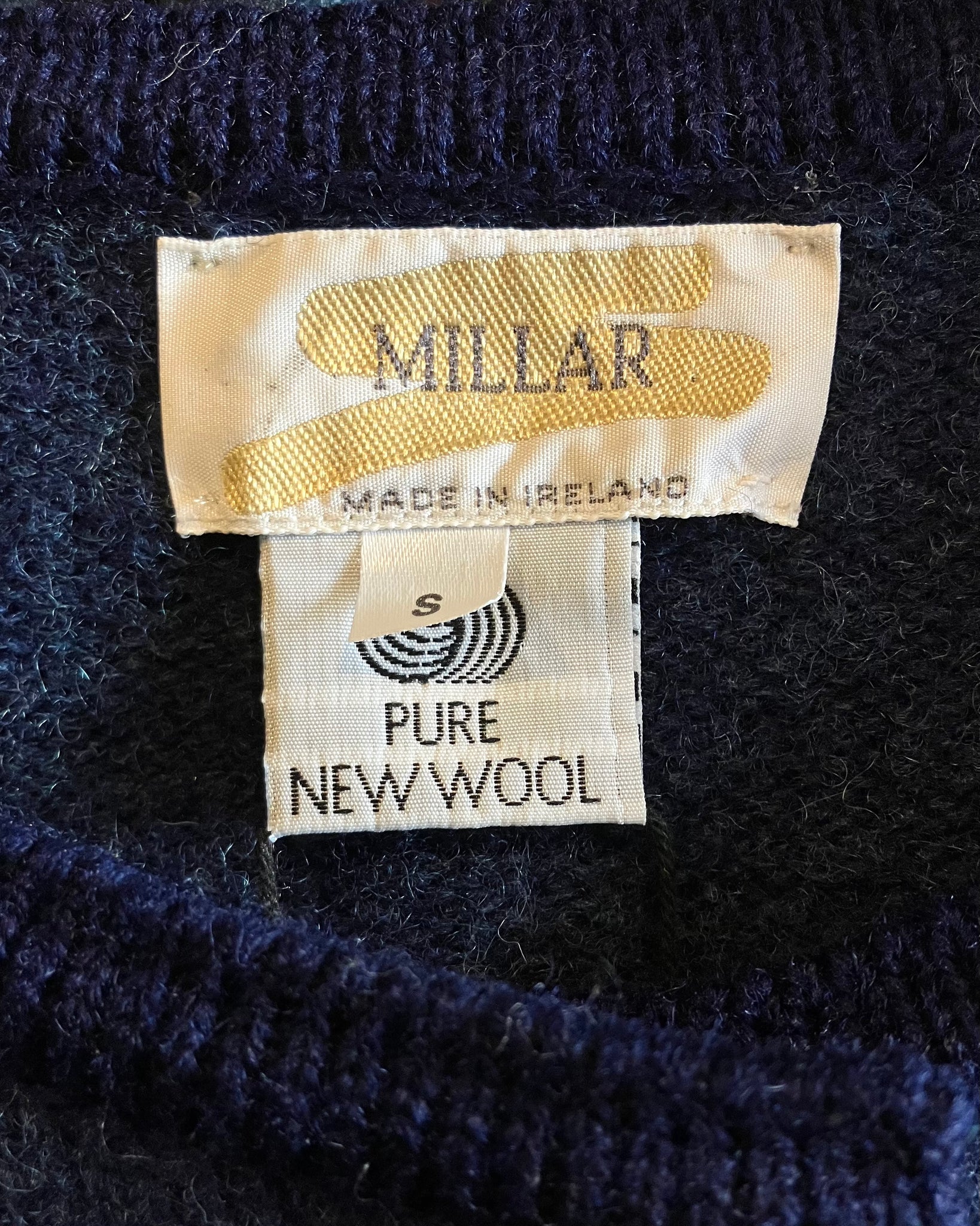 ネイビーにグリーンやピンクの不思議な記号の様な柄と、